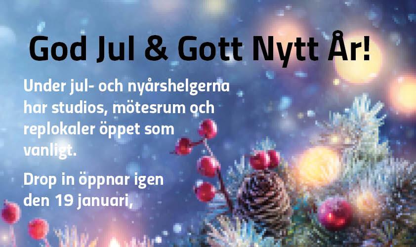 Studios, mötesrum, replokal och dansstudio har öppet som vanligt under hela jul- och nyårshelgerna.
